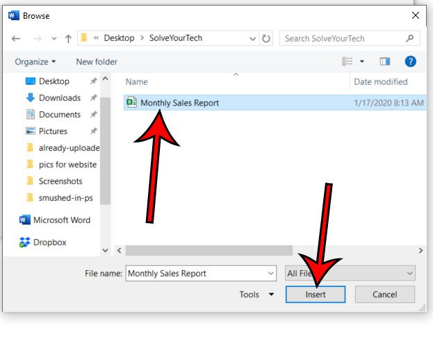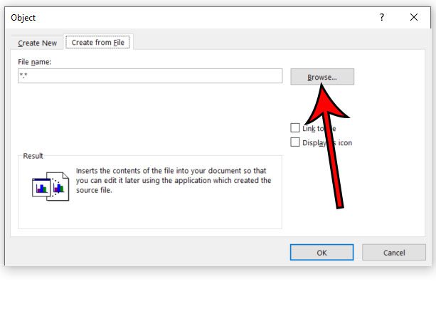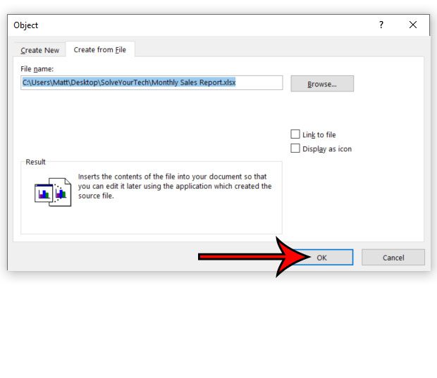 Etapa 7: clique emOKna parte inferior da janela para inserir o arquivo.
