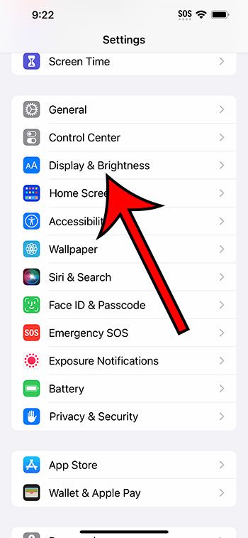 Passo 2: Role para baixo e selecione oTela e brilhoopção.