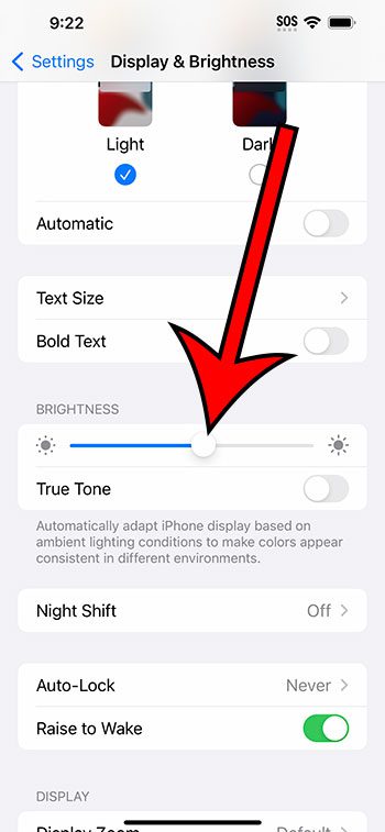 Você pode deixar a tela do seu iPhone 14 mais brilhante acessandoConfigurações > Tela e brilho >em seguida, arrastando oBrilhocontrole deslizante para a direita.