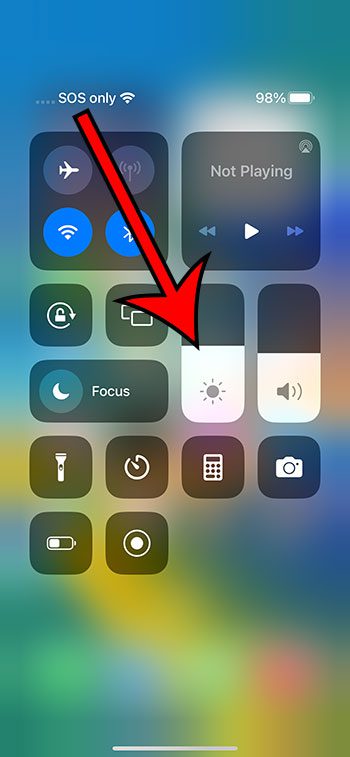 Observe que você também pode abrir o Centro de Controle deslizando para baixo a partir do canto superior direito da tela e, em seguida, arrastar o controle deslizante Brilho para cima para aumentar o brilho ou arrastá-lo para baixo para diminuir o brilho.