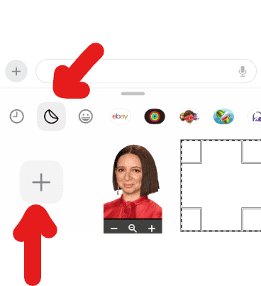 Clique no ícone do adesivo e, em seguida, clique no sinal de adição grande para adicionar um novo adesivo