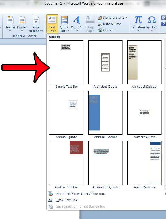 Passo 4: Selecione o tipo de caixa de texto que deseja criar. Se você está procurando apenas a opção básica, clique no botãoCaixa de texto simplesopção.
