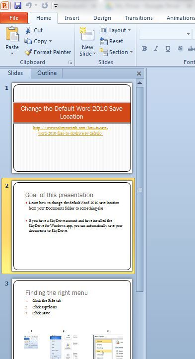 Agora que você sabe como mesclar arquivos no PowerPoint 2010, pode tornar muito mais fácil combinar slides existentes de outra apresentação com a atual.