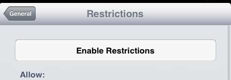 Etapa 4: toque noHabilitar restriçõesbotão na parte superior da tela.