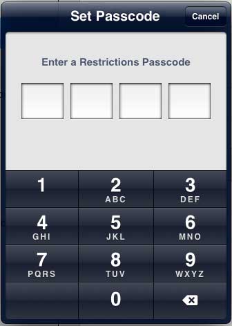 Isso configurará o dispositivo para que novos aplicativos só possam ser instalados por quem conhece a senha do menu Restrições.
