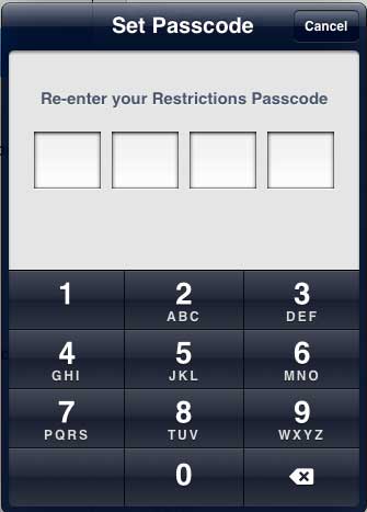 Se precisar acessar a App Store para baixar ou atualizar um aplicativo, você precisará retornar ao menu Restrições e reativar a App Store usando a senha que você escolherá abaixo.