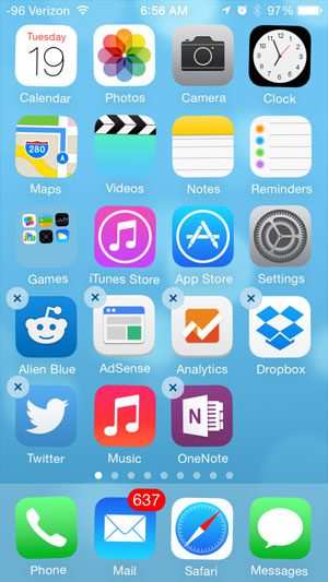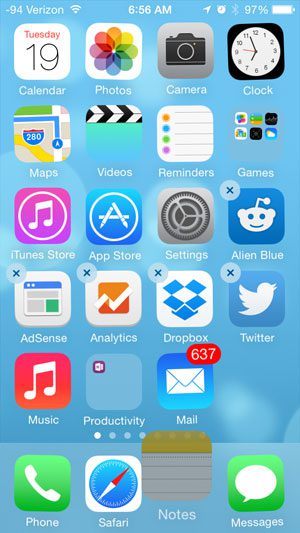 Passo 1: Toque e segure oNotasícone até que todos os aplicativos na tela comecem a tremer e alguns deles tenham x no canto superior esquerdo.