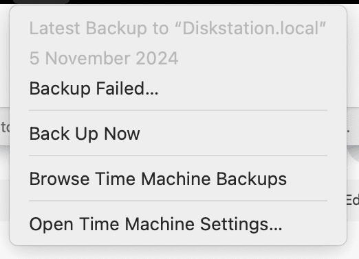 - Clique no ícone do Time Machine na barra de menu.