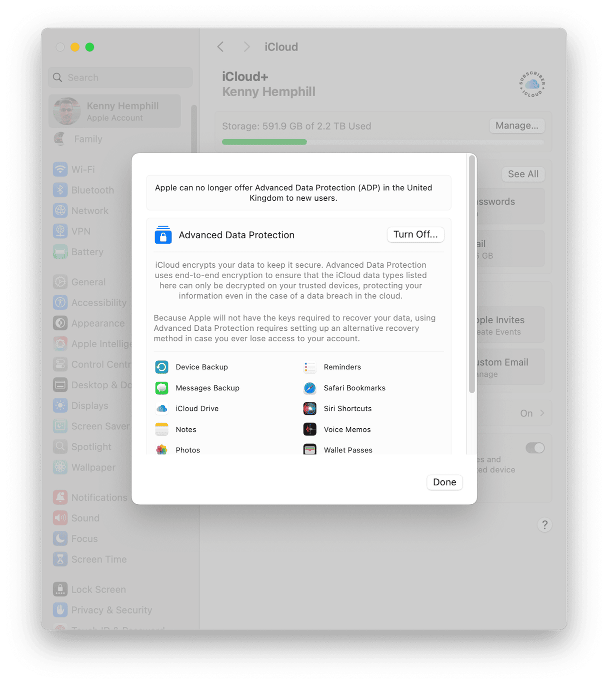 - Se a Proteção Avançada de Dados estiver ativada, você precisará ativar o acesso à Web no seu Mac ou em outro dispositivo. Clique em Gerenciar no dispositivo. Toque na notificação que aparece no seu Mac ou outro dispositivo e siga as instruções na tela para ativar o acesso.