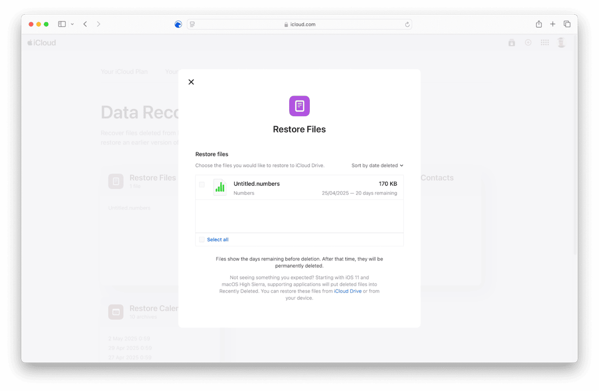 Se o arquivo que você substituiu foi salvo no iCloud, você poderá recuperá-lo usando o recurso de recuperação do iCloud Drive na web.
