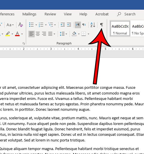 Etapa 3: clique noMostrar/Ocultarbotão noParágrafoseção da fita.
