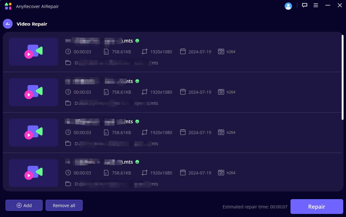 Os algoritmos avançados e a interface amigável do AIRepair o tornam uma escolha confiável para reviver até mesmo arquivos MOV gravemente corrompidos.