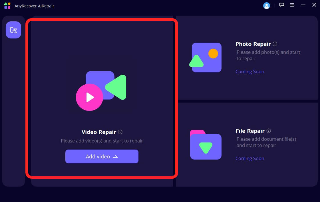 Etapa 1.Baixe e inicie o AIRepair e navegue até “Reparo de vídeo”E clique em“Adicionar vídeo“.