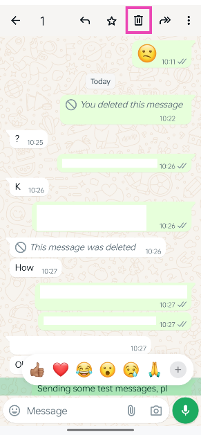 Etapa 2: Pressione longamentea mensagem que deseja excluir e clique no botãoícone de lixeirano topo.