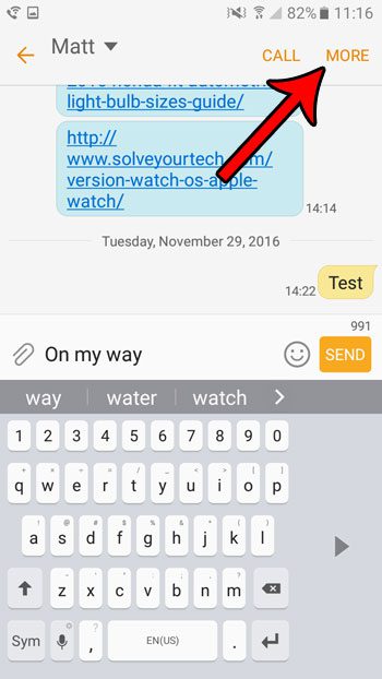 Passo 2: Selecione o destinatário pretendido e digite a mensagem, mas não a envie ainda. Toque noMaisbotão no canto superior direito da janela.
