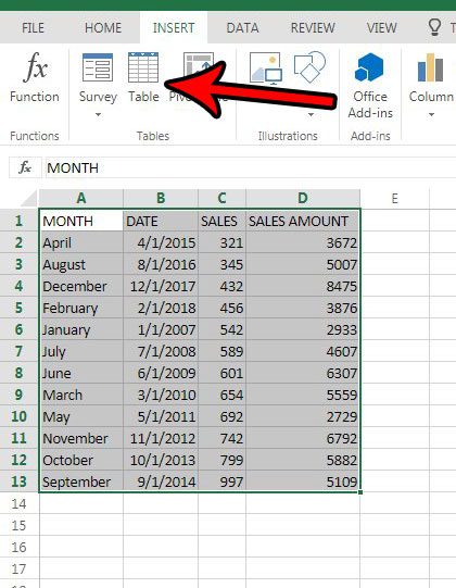 Etapa 5: clique noMesabotão noTabelasseção da fita.