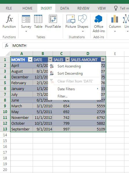 Etapa 8: selecione oClassificar em ordem crescenteouClassificar em ordem decrescenteopção. Se você escolherClassificar em ordem crescenteentão a data mais antiga estará no topo da coluna. Se você escolherClassificar em ordem decrescenteentão a data mais recente estará no topo da coluna.