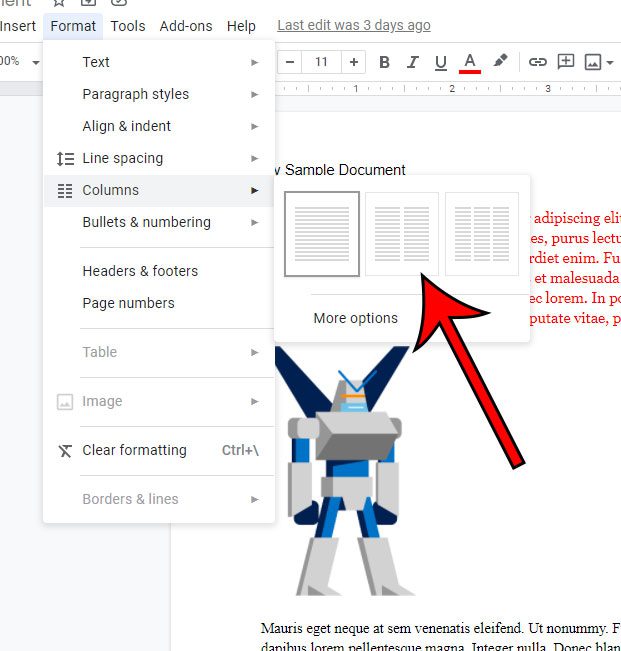 Felizmente, isso é possível graças à opção do Google Docs que permite criar colunas.