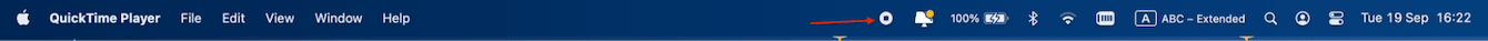 Quando você inicia uma gravação de tela com QuickTime, a barra de menu desaparece para que você possa se beneficiar de uma experiência em tela inteira.