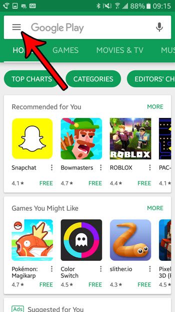 As etapas deste artigo foram executadas em um Samsung Galaxy On5 no sistema operacional Android Marshmallow. Este guia pressupõe que seus aplicativos estão atualmente configurados para serem atualizados automaticamente sempre que uma atualização estiver disponível para um aplicativo instalado em seu telefone. Seguir essas etapas impedirá que essas atualizações ocorram automaticamente, o que exigirá que você atualize seus aplicativos manualmente.