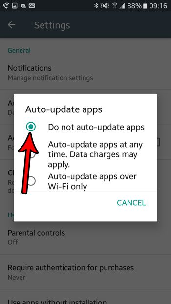Etapa 5: toque noNão atualize aplicativos automaticamenteopção para evitar que futuras atualizações automáticas de aplicativos ocorram.