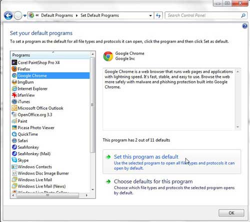 Por ser um programa de processamento de texto, não se destina a essa atividade. Felizmente, o Windows 7 inclui umProgramas padrãomenu que você pode aproveitar para restaurar a ordem entre os links em que você clica no seu computador.