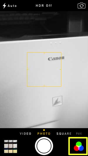 Embora isso tenha sido limitado anteriormente a esses aplicativos de terceiros, o sistema operacional do iOS 7 atualizou filtros ao aplicativo de câmera no iPhone 5.