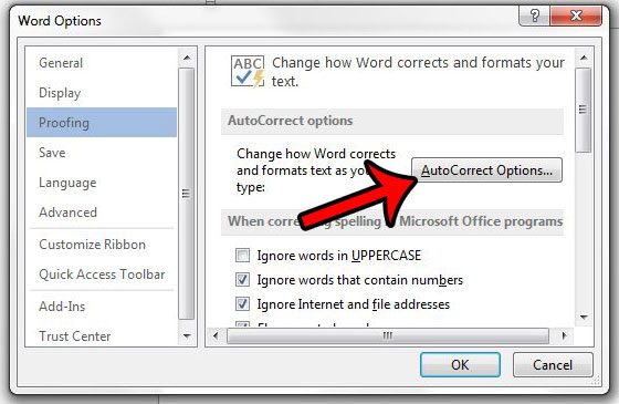 Etapa 5: clique noOpções de autocorreçãobotão.
