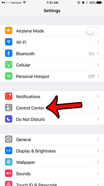 Etapa 2: toque noCentro de Controleopção.