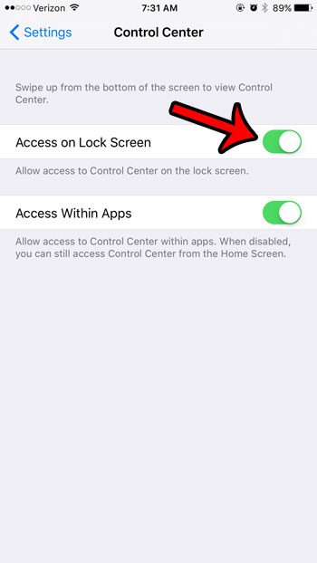 Etapa 3: toque no botão à direita deAcesso na tela de bloqueiopara ligá-lo.