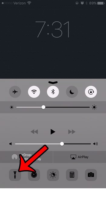 Agora você pode simplesmente deslizar de baixo para cima na tela de bloqueio para abrir o Centro de Controle e tocar no ícone da lanterna no canto inferior esquerdo da tela.