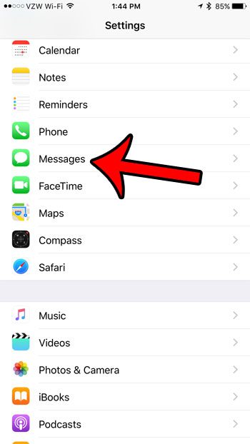 Passo 2: Role para baixo e selecione oMensagensopção.