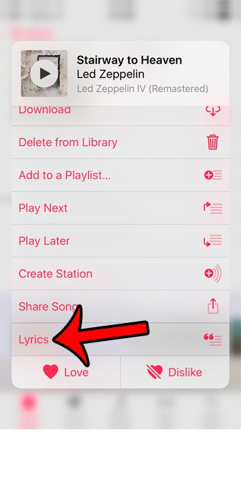 Etapa 4: selecione oLetra da músicaopção perto da parte inferior da tela.