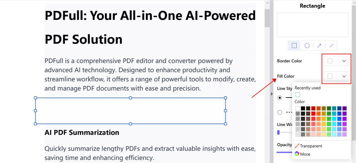 Etapa 3: desenhe um retângulo branco– Use a ferramenta de forma retangular e crie uma caixa branca, semelhante ao PDFull. Posicione e redimensione para cobrir a área desejada.