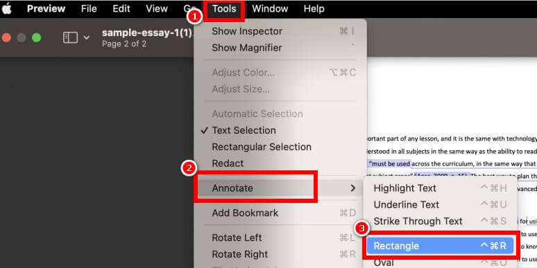 Se você é um usuário de Mac, há outra opção para branquear o PDF. A visualização em um Mac será usada neste método, que envolve colocar um retângulo branco sobre as áreas que deseja ocultar, semelhante ao mascaramento com fita corretiva no papel. Veja como você pode fazer isso:
