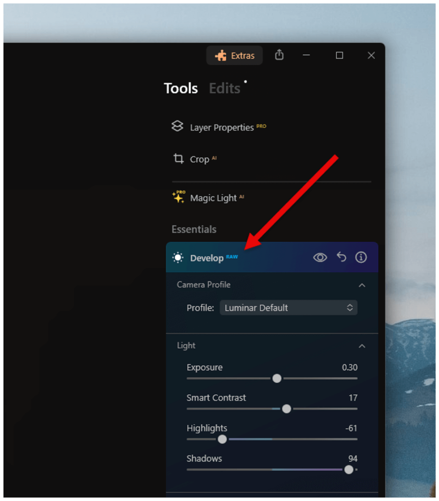 Tanto o Luminar quanto o Affinity Photo possuem ferramentas sólidas de desenvolvimento RAW, cobrindo todas as opções usuais para ajustar exposição, equilíbrio de branco, realces, sombras e cores. Ambos os aplicativos também possuem ferramentas integradas para mesclagem HDR, montagem de panorama e empilhamento de foco.