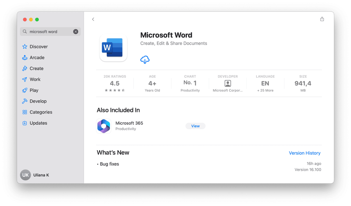 Se nada mais funcionar, a etapa final é desinstalar e reinstalar o Word. Mas certifique-se de desinstalá-lo completamente. Apenas arrastar o binário do aplicativo para a Lixeira não resolverá. A maneira mais fácil de desinstalar completamente o Word, ou qualquer outro aplicativo, é usar o Desinstalador no recurso Aplicativos do CleanMyMac. Basta selecionar Microsoft Word e clicar em Desinstalar. Agora, acesse a App Store ou o site oficial e baixe novamente.