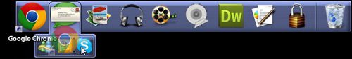 No entanto, eu uso meu navegador da Web mais do que qualquer outro programa em meu computador, então este é, na verdade, o local menos conveniente no dock para esse ícone. Portanto, posso melhorar minha facilidade de acesso movendo esse ícone para a extremidade esquerda do dock. Você pode mover os ícones do Dell Dock simplesmente clicando em um ícone e arrastando-o para a posição desejada no dock, como na imagem abaixo.