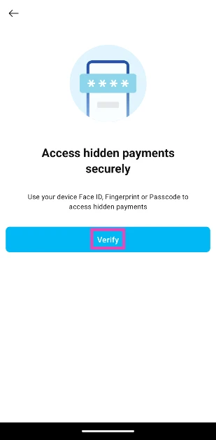 A partir de agora, Paytm é o único aplicativo UPI que permite gerenciar seu histórico de transações, guardando pagamentos individuais. Depois que você oculta um pagamento, ele é retirado da lista de 'histórico de transações' e movido para uma seção restrita. O acesso a esta seção só é fornecido após a devida autenticação. Você pode verificar-se usando Face ID, impressão digital ou senha do dispositivo.