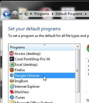 As etapas nesta seção mostrarão como definir o Chrome como padrão navegando pelo Chrome em vez do menu Programas padrão do Windows 7.