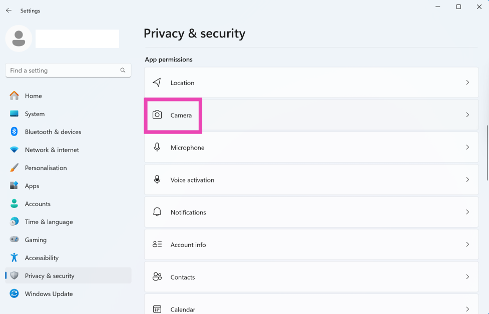 Se você não conseguir fazer sua câmera funcionar em um aplicativo específico, certifique-se de que esse aplicativo tenha acesso à câmera. Veja como você pode verificar isso.
