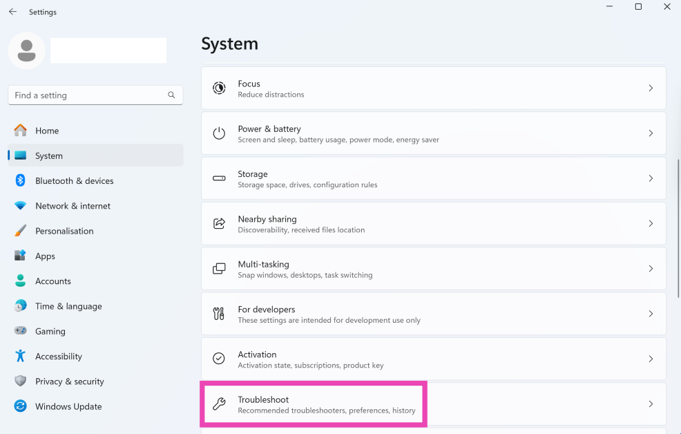 Etapa 2:Role para baixo e clique emSolucionar problemas.