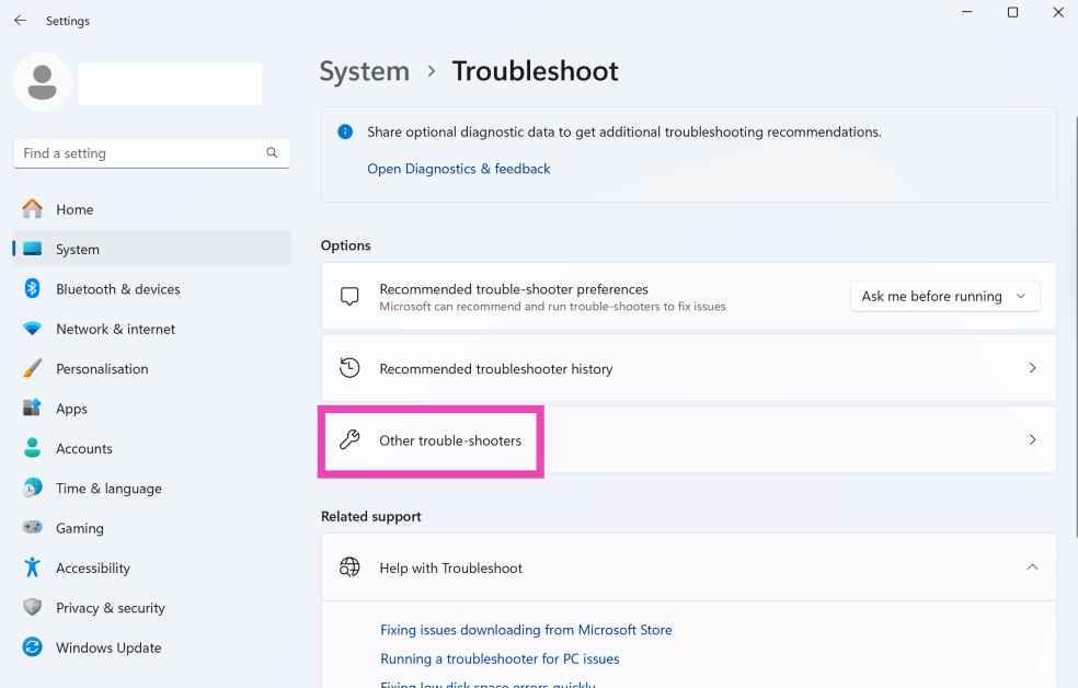 Etapa 3:SelecioneOutros solucionadores de problemas.