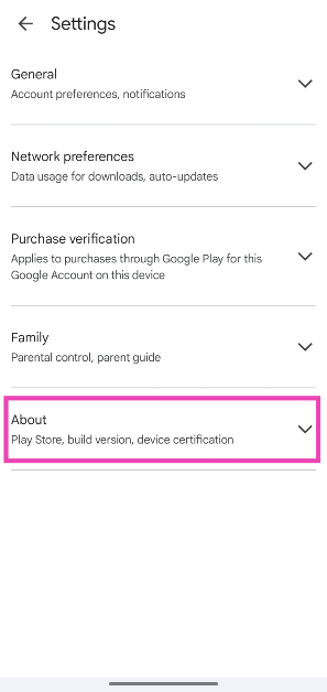Inicie a Google Play Store, toque na sua foto de perfil, vá paraConfigurações>Sobree toque em ‘Atualizar Play Store’.