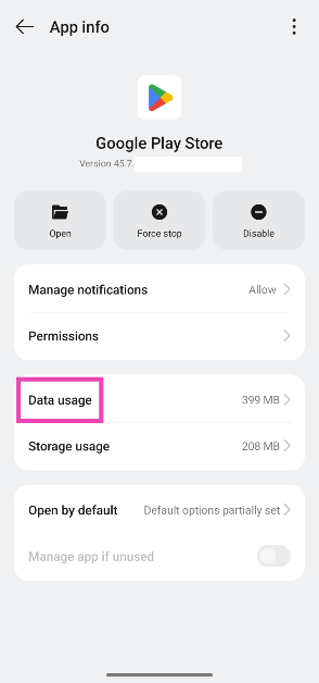 Vá paraConfigurações>Aplicativos>Google Play Store>Uso de dadose ative o botão de alternância ao lado de ‘Usar dados de segundo plano’.