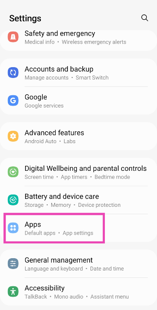 Etapa 1:Vá paraConfiguraçõese selecioneAplicativos.