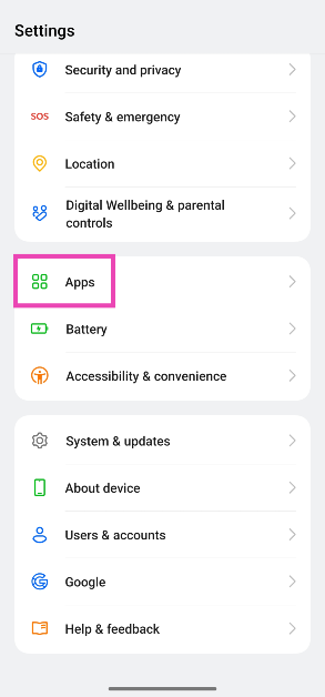 Etapa 1:Vá paraConfiguraçõese selecioneAplicativos.