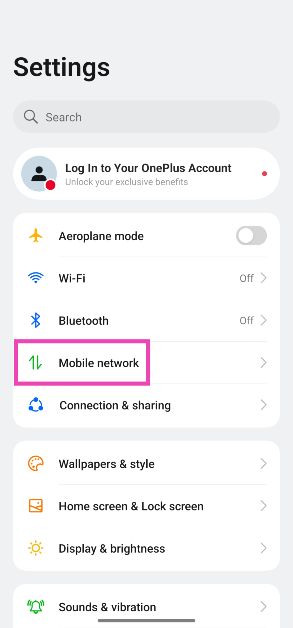 Etapa 1:Vá paraConfiguraçõese selecioneRede móvel.