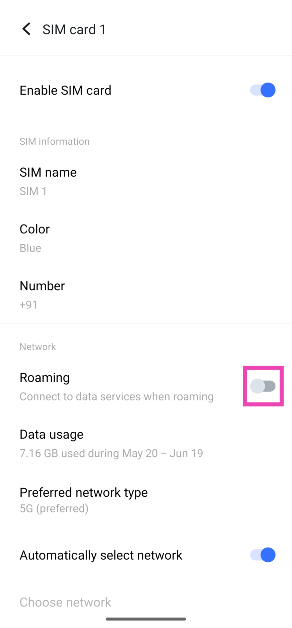 Vá paraConfigurações>Rede móvel, selecione um cartão SIM e desligue o botão de alternância ao lado de ‘Ativar’.