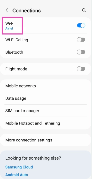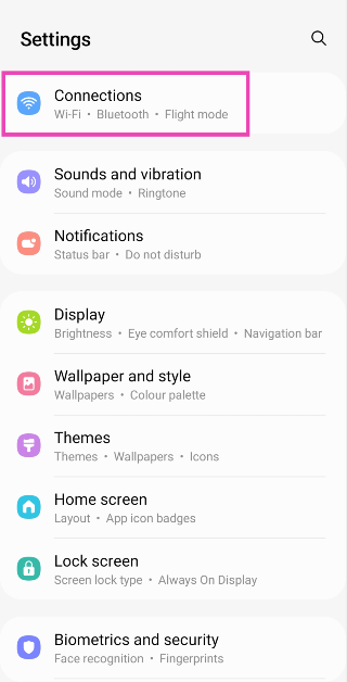 Etapa 1:Vá paraConfiguraçõese selecioneConexões.